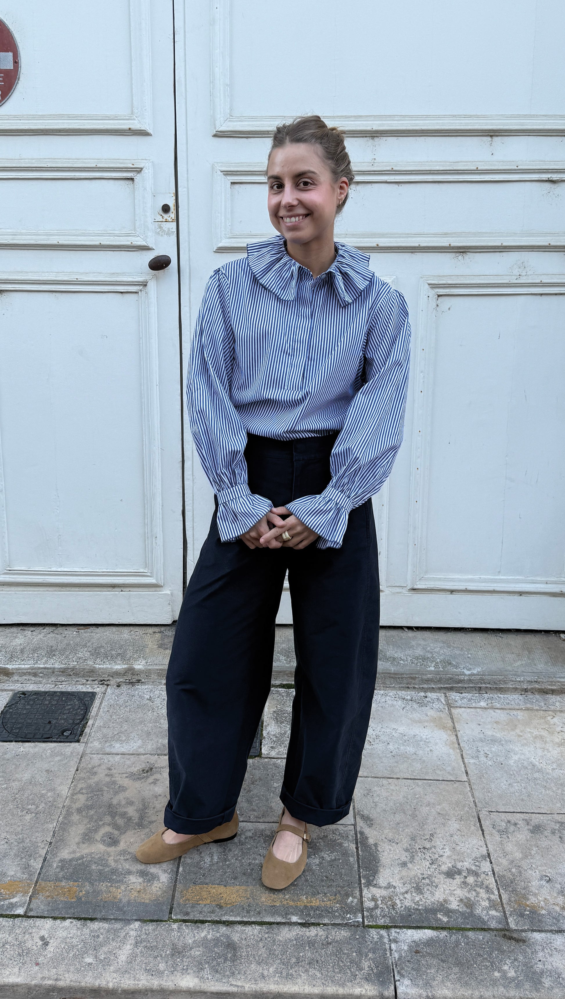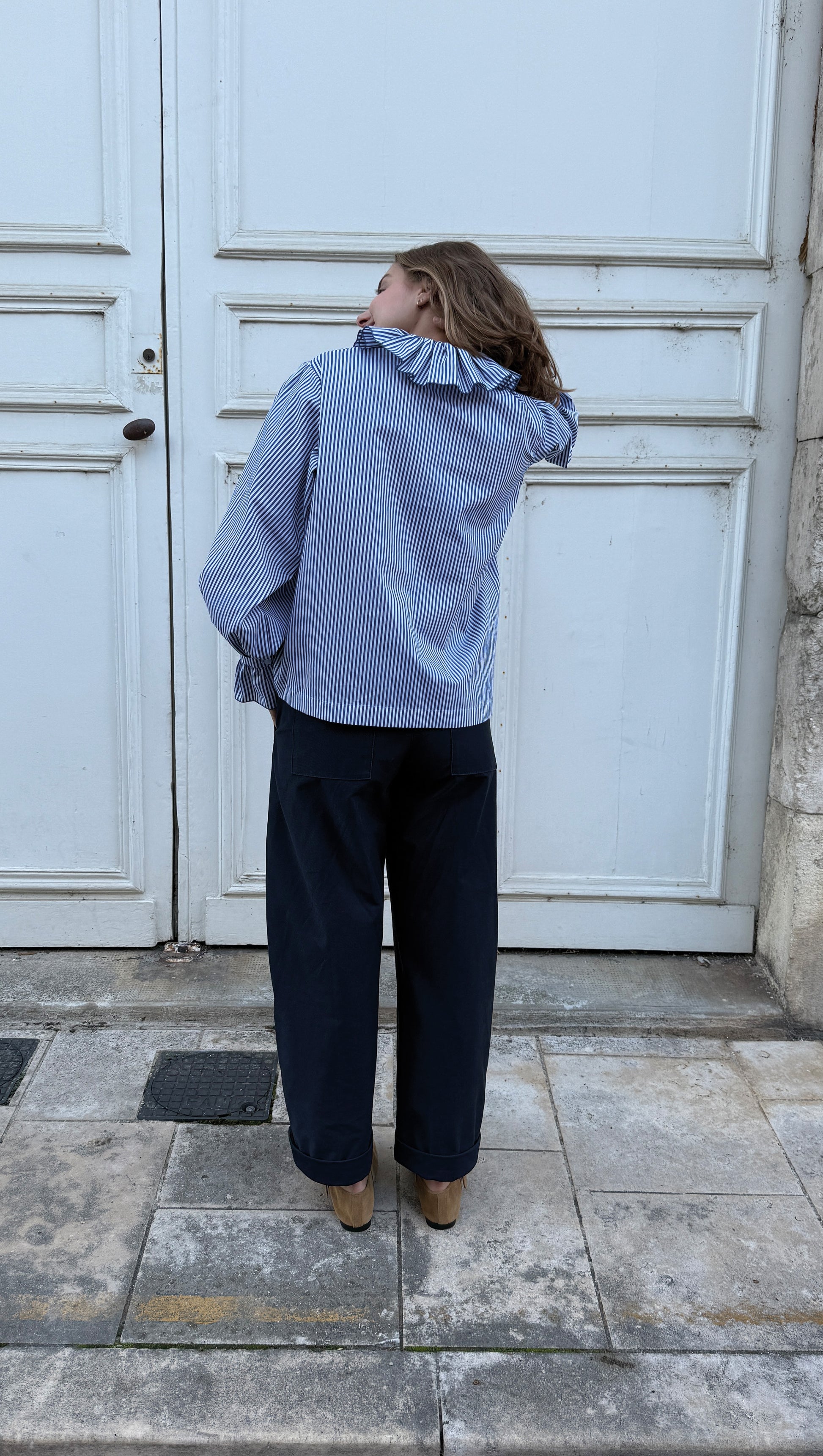 Popeline rayures bleu. 100% coton. Tissus provenant de deadstock. Pièce fabriquée en France.